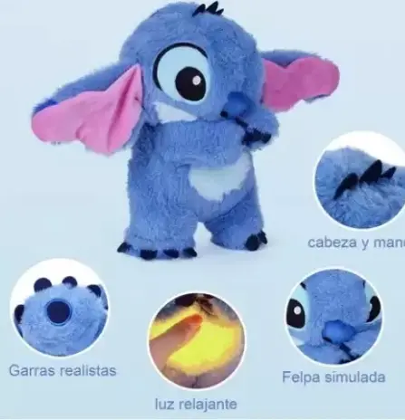 Este Peluche Stitch Relajante con respiración real, luz LED cálida y sonidos de cuna, está diseñado para ayudar a dormir mejor, reducir el estrés y generar sensación de tranquilidad y compañía.