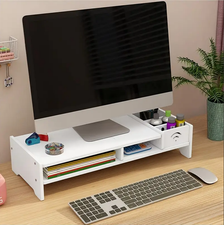 ¿Qué es?: este robusto elevador de monitor está hecho de MDF que no se deforma ni se agrieta, y es resistente al agua, puede soportar hasta 45 libras de presión hacia abajo. Diseño seguro, fabricado con pintura ecológica, esquinas redondeadas sin bordes afilados ni tornillos para la protección de tu cuerpo.